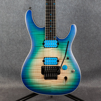 Ibanez Iron Label SIX6FDFM - Blue Space Burst | Sweetwater Ibanez SIX6FDFM Iron Label Solidbody Electric Guitar Features: S-series guitar that is built for progressive metal styles Beautiful flame maple top Reverse headstock offers an aggressive look and punchy lows DiMarzio Fusion Edge humbuckers are voiced to be powerful, clear, and fast Coil tap switch adds single-coil tones